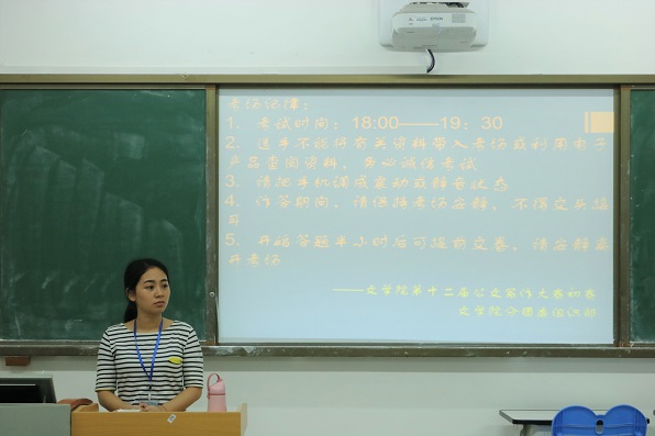 本次公文写作大赛的初赛以闭卷考试的方式进行,考试题型分别有:单项选择题、多项选择题、判断题、填空题和材料题,这些内容主要考察同学们的公文写作能力和知识储备能力。初赛将选拔出分数靠前的十名同学进入本次公文写作大赛的决赛。在工作人员宣读考场纪律和分发试卷及草稿纸后,同学们在赛场上奋笔疾书,遵守考场纪律,认真作答。