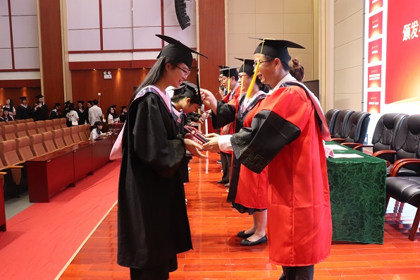 发言完毕后,刘昌海书记宣读了2019届毕业生学位授予决定。随后同学们依次上台,握手、拨穗、正冠、合影。