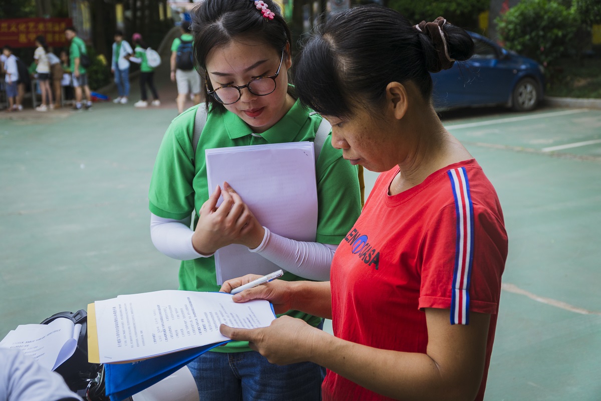 “三下乡”调研组成员则在招生间隙,向家长和孩子们分发了关于中华人民共和国成立70周年农村基础政策认知和青少年意识形态健康成长的调查问卷,家长与孩子们积极配合,填写调查问卷。家长或孩子们对问卷有疑惑的地方,调研组成员认真引导,助力问卷的完成。