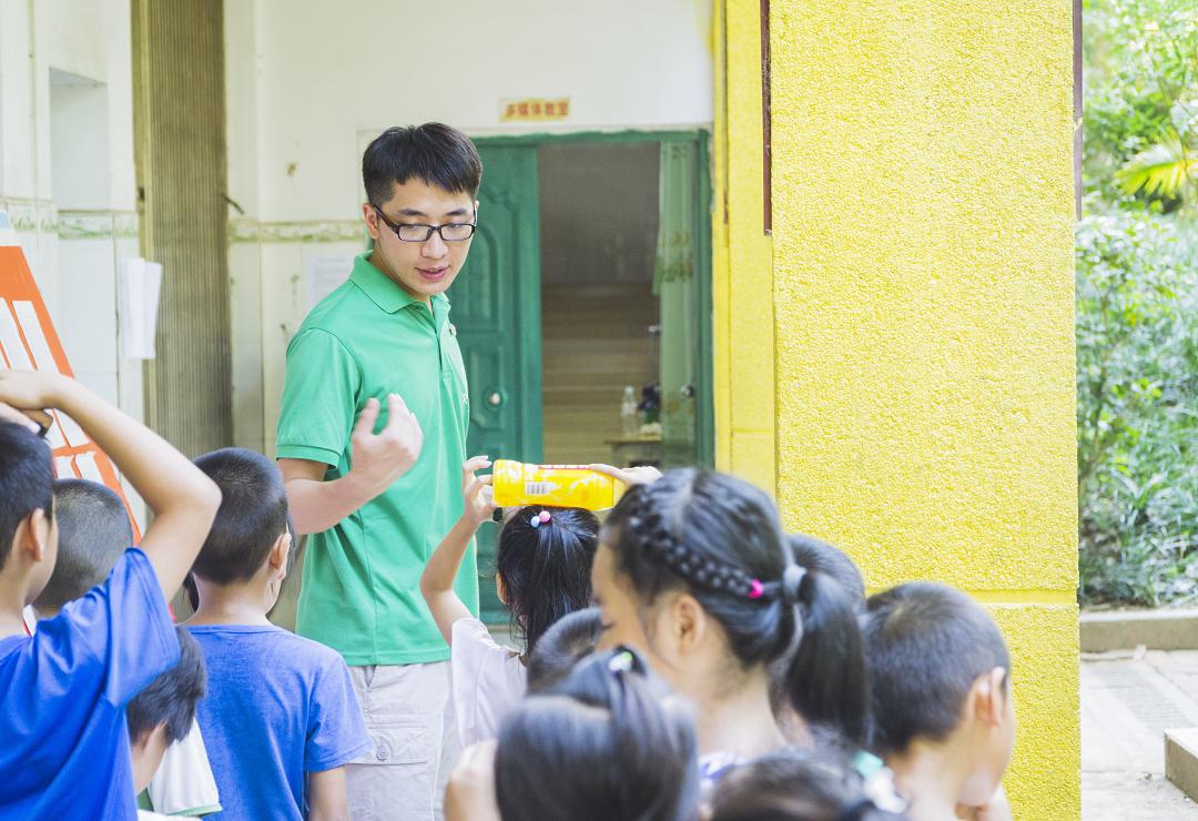 (支教组队员带领孩子们参加户外素质拓展活动)
