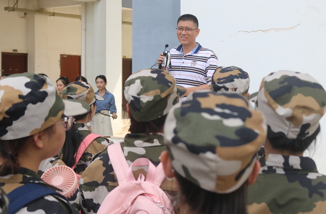 (石勇老师向学生分享军训心得)