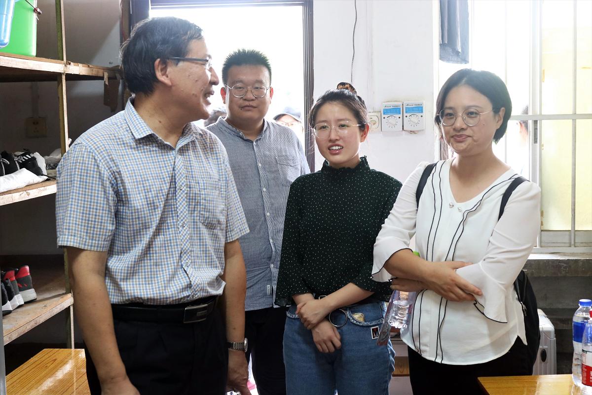 (党委书记刘昌海老师、党委副书记旷晓霞老师、辅导员张煊光老师及郑悦老师视察工作)