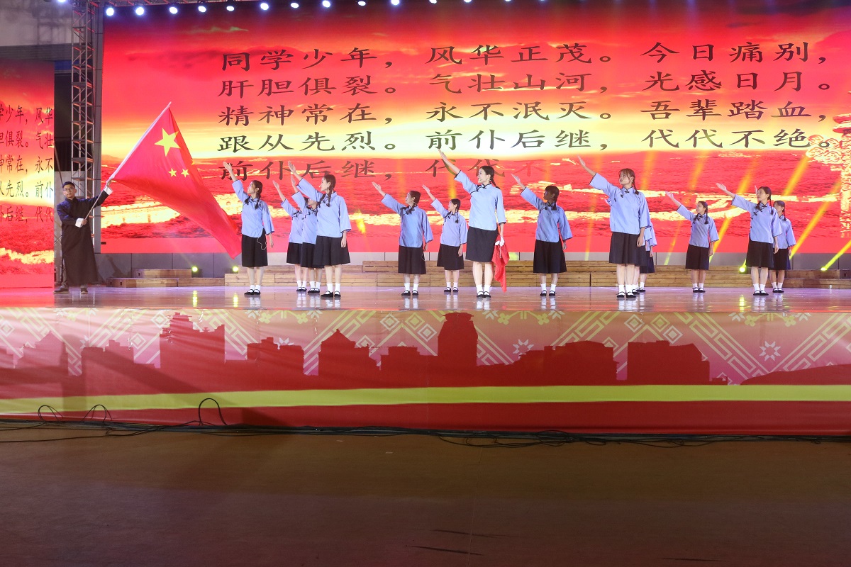 晚会伊始,校党委伍先华副书记首先上台致辞。他在讲话中列举了新中国走过的风雨兼程的70年中所取得的诸多辉煌成就,并告诫同学们应始终秉承家国天下的情怀,把个人的理想追求融入国家和民族的事业中,书写更精彩的中国故事。