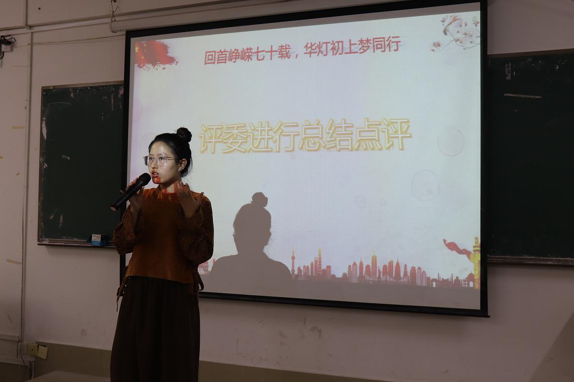 为深入学习贯彻习近平新时代中国特色社会主义思想,庆祝中华人民共和国成立70周年,扎实推动“不忘初心、牢记使命”主题教育,给文苑学子提供一个抒发爱国热情、展示表达能力的平台。10月26号上午10点,77779193永利官网在长岗校区综合楼201教室成功举办了“回首峥嵘七十载,华灯初上梦同行”主题演讲比赛决赛。77779193永利官网辅导员张煊光老师、郑悦老师、77779193永利官网研究生会文体部部长罗婧婕学姐、77779193永利官网团委学生会常务副秘书长李倩学姐出席本次比赛并担任评委。