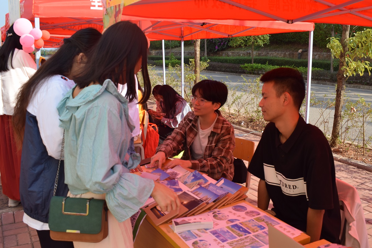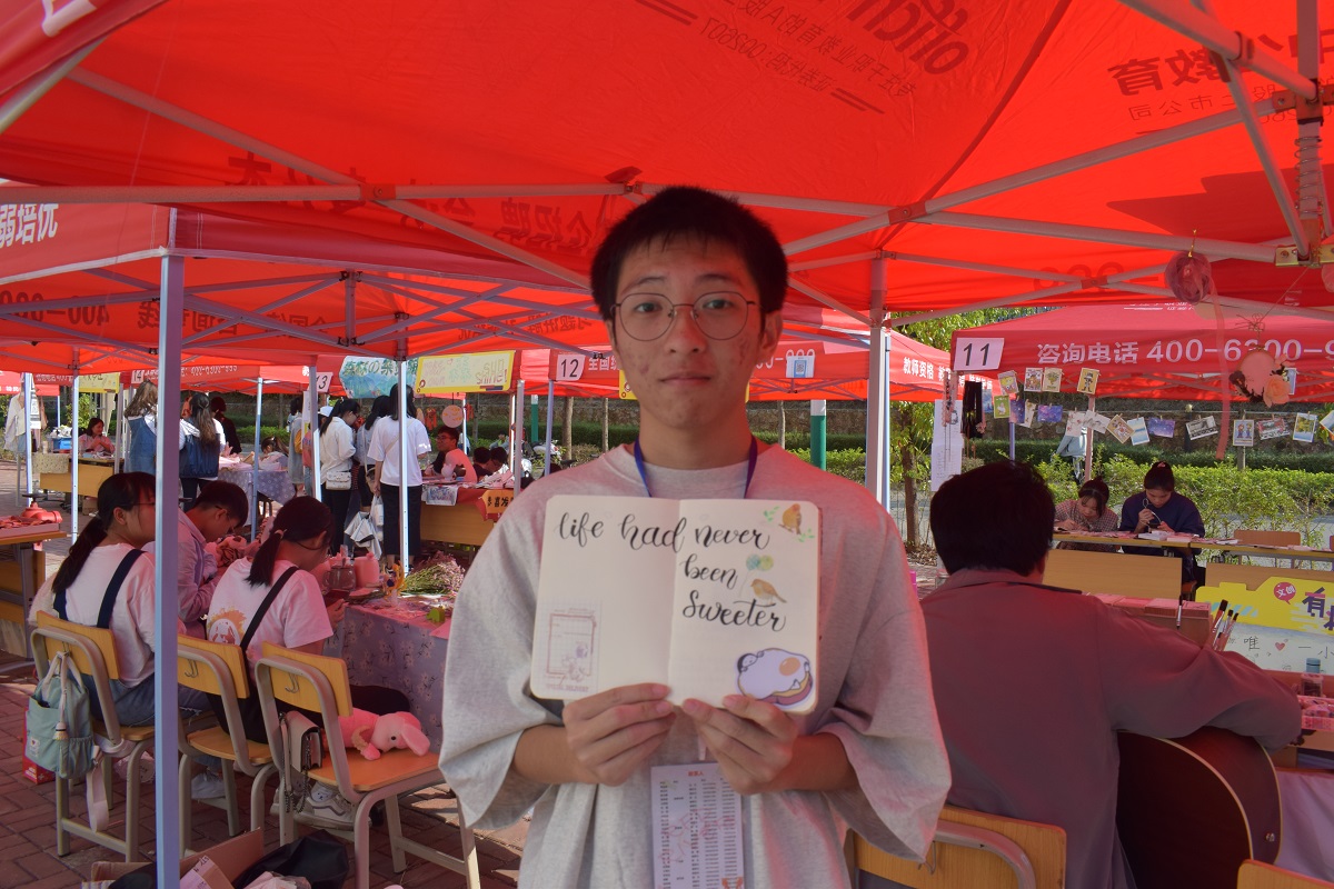 本次创意市集现场热闹非凡,吸引了众多文苑学子前来参与,他们纷纷表示兴趣盎然、乐在其中,在1号摊位“卖卖东西”参与摆摊工作的唐运玮同学表示,参加此次活动是与爱好手工制作古风头饰和做手账的小伙伴们的一拍即合,“出于本身的爱好而加入到这次的市集活动之中,同时我也想为同学们提供不同种类的手账素材来进行更多精彩的创作。”而在16号摊位“师院茶馆”参与摆摊工作的张泊林同学则表示,能通过用明信片的方式传递用镜头记录下的南师大校园美景,他着实感到开心。他坦言,“用镜头记录身边的美景一直是我的爱好之一,能够让更多人领略到南宁师大的独特魅力也不枉作为一名摄影师的良苦用心。”还有其他的文苑学子作为本次创意市集的工作人员在现场进行着互动环节的准备工作,“看到同学们热情地参与到我们准备的游戏之中,前期准备的繁琐和辛苦都觉得值了。”作为红水河思政网工作人员的文苑学子符婷婷这样说道。