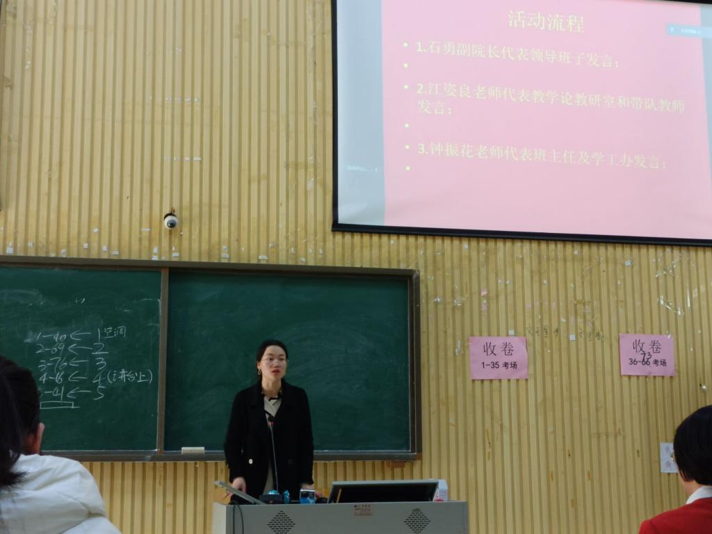 第二个环节由带队老师代表江姿良老师进行发言,江姿良老师明确了在此次实习过程中需要注意的事项。江老师也再次强调作为实习老师要重视自己的形象,要有老师的风范。在实习的过程中要保持自身的整洁,不能给实习中学带来麻烦,同时要按时完成实习材料的填写,做到“今日事今日毕”。