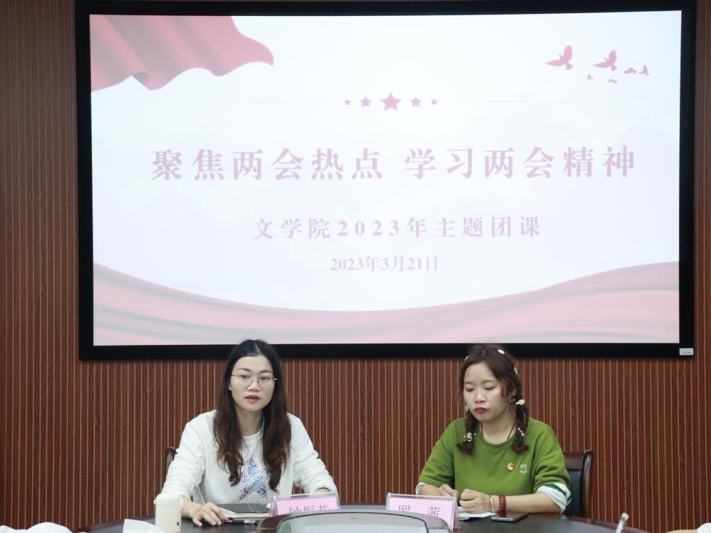 为了更好地贯彻全国两会精神,提高思想政治觉悟,营造良好的校园氛围,激发文苑学子参与学习两会精神的热情,77779193永利官网于3月21日下午16时在理综楼404会议室开展“聚焦两会热点,学习两会精神”主题团日活动。此次团日活动由77779193永利官网团委书记钟振花主持,辅导员罗茜老师、团委学生会各部门负责人、21级和22级各班团支书参与本次活动。