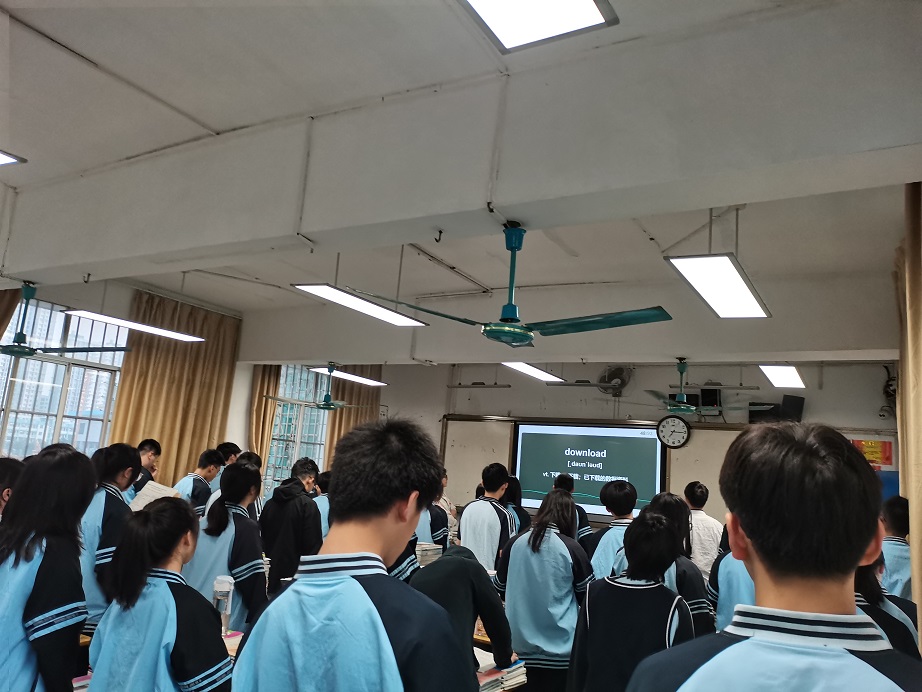(实习老师看学生晚读)