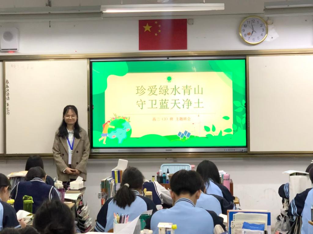 芳华待灼,砥砺深耕。经过三周的观摩学习,实习生们都开始有条不紊地走上讲台,真正成为课堂上各种教学活动的开展者。大家在课前做了充分的准备工作,积极同指导老师进行教学活动方面的探究,力求呈现不出错、内容全、气氛活跃的优质课堂。3月27日晚上19点,实习小组成员冯洁在高二(3)班开展了以“珍爱绿水青山,守卫蓝天净土”为主题的班会。根据班会主题,实习老师冯洁分享了许多成功践行“绿水青山就是金山银山”理念的生态改造案例,学生认真听讲并体会到生态环境的重要性。3月28日早上8点30分,实习小组成员丁凤娇在高二(4)班进行《蜀道难》的讲授。教学过程生动有趣,总体课堂氛围昂扬热烈,学生们也在课堂中收获满满。同行的实习生伙伴们坐在教室后排认真听讲,记录讲授者的教态和学生们的即时反馈,给予主讲实习生很大的鼓励和支持。教学完成后,指导老师唐海燕及时与实习老师丁凤娇沟通复盘,给出优化建议,进行教学反思,希望通过对课堂不断地打磨以达到理想的教学效果。