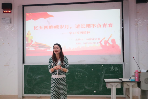 本次培训以五四精神为依据,深入学习爱国、进步、民主、科学的深刻内涵。钟振花老师紧紧围绕着五四精神这一议题,不断激发青年担当意识,分别从五四运动的背景、经过、内涵、意义等方面进行阐述,结合实际加以分析,鼓励同学们积极入党,自觉提高思想觉悟,以实现中华民族伟大复兴的中国梦为己任,不断提高自身本领,争做有为青年。
