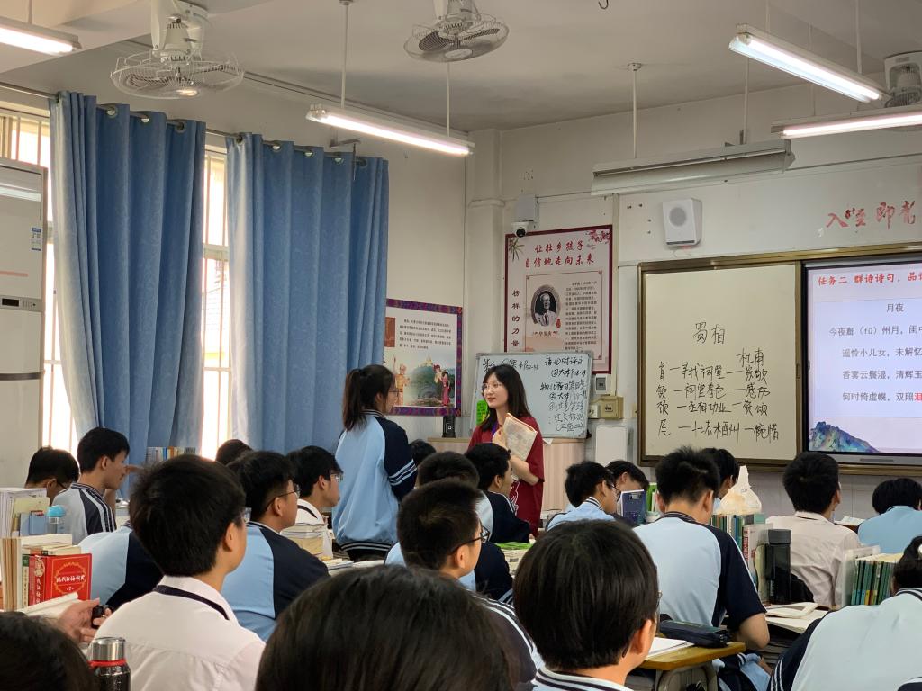 除了丰富多彩的课外活动外,实习生们积极将所学知识应用到教学实践中,又从实践中获得宝贵经验,不断进步成长。本周三,实习生丁凤娇和周姿彤分别在高二(10)班和高二(12)班进行了第二轮授课。上课前,她们总结了第一次讲课的经验,不断打磨自己的教案,给学生上了一堂生动有趣的语文课。同行的实习伙伴坐在教室后排认真听讲,记录讲授者的教学姿态和学生的即时反馈,给予授课的实习生极大的鼓励与支持。
