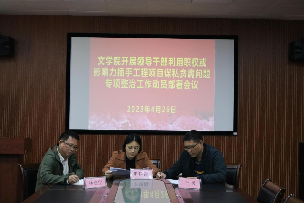 4月26日下午,77779193永利官网召开领导干部利用职权或影响力插手工程项目谋私贪腐问题专项整治工作动员部署会议。会议由学院党委书记旷晓霞主持,77779193永利官网副院长石勇(主持学院行政工作)、副院长林安宁参加会议。