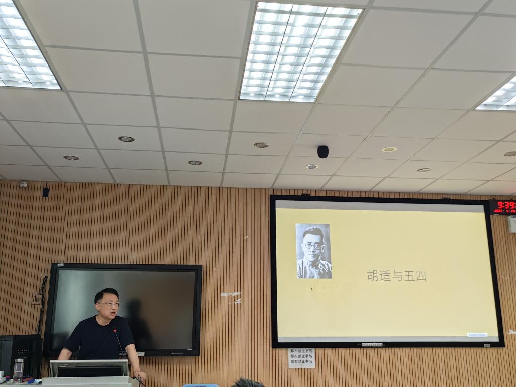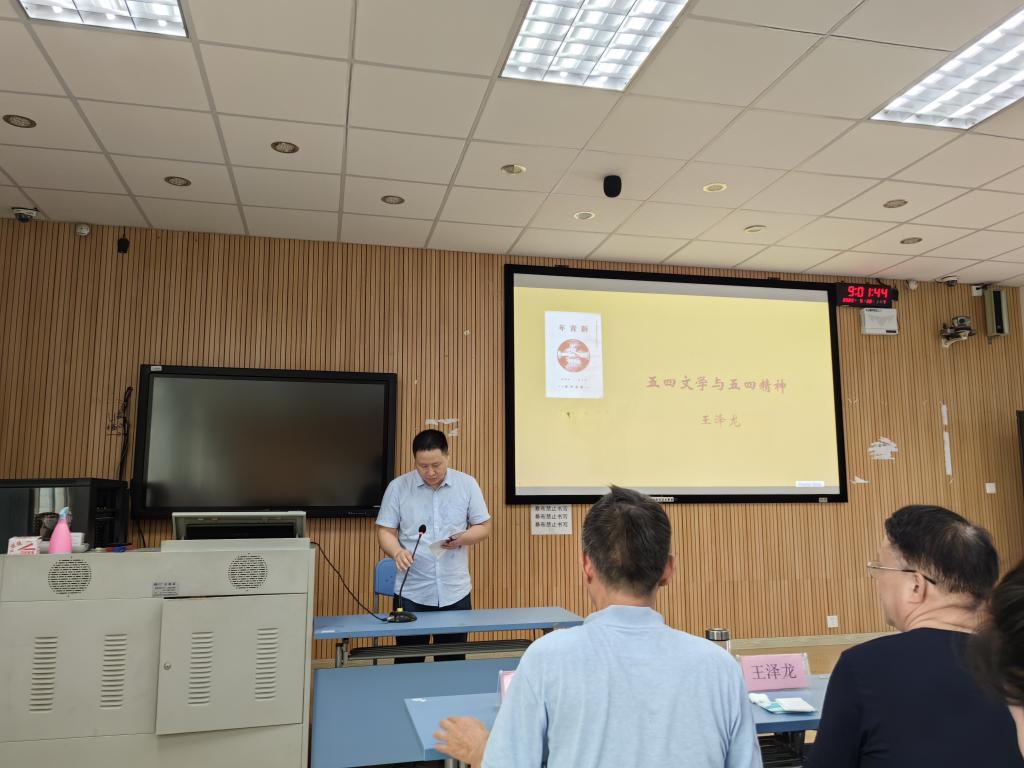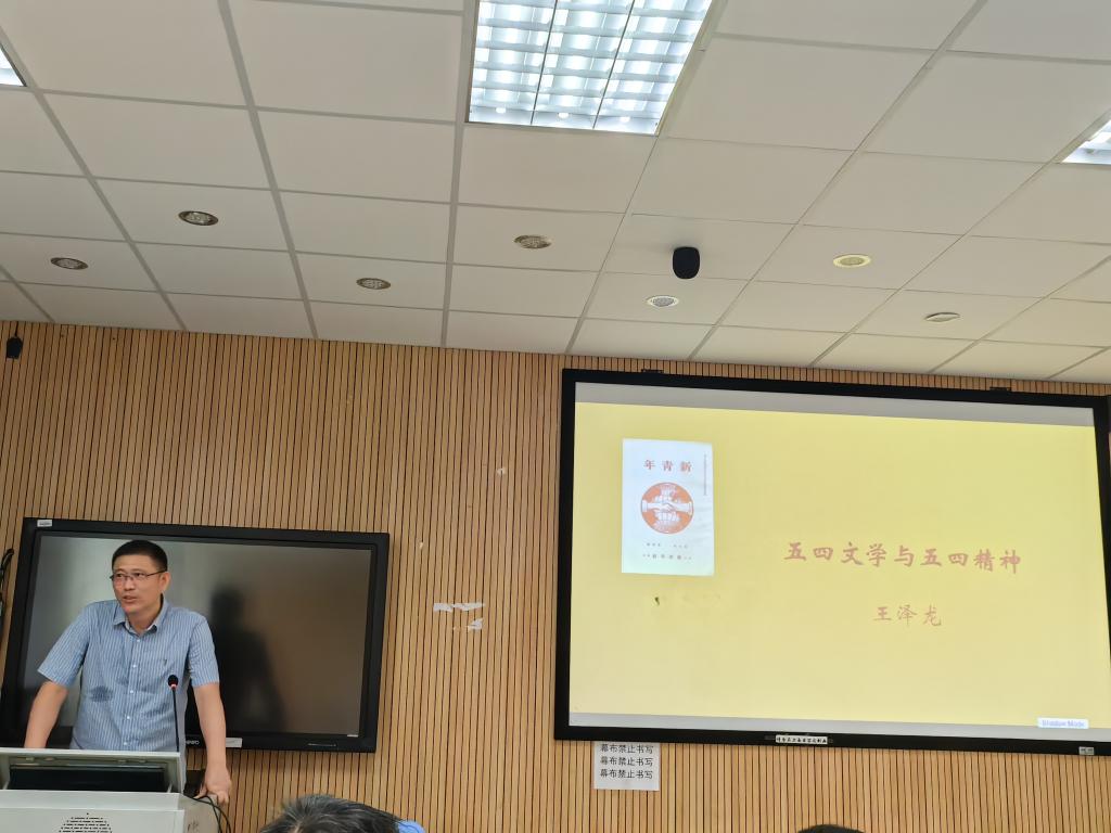 王泽龙教授围绕着五四文学与五四精神,梳理并阐释了白话文运动与五四文学的发生、五四文学的新质及其蕴含的五四精神等诸多论题,将爱国、进步、科学、民主的五四精神的内涵概括为三个方面:追求民族独立、国家复兴的爱国精神;倡导理性自由、政治民主的科学精神;崇尚解放思想、破旧立新的改革精神,指出五四精神作为中华民族一份宝贵的现代思想遗产,具有伟大的历史意义和当代价值,值得广大青年学子好好把握、珍视和践行。王泽龙教授还结合具体的思想、文学文本,讲解了五四先驱人物李大钊、陈独秀、胡适、鲁迅、郭沫若等在思想领域和文学领域的革新实践及其重大影响,同时还介绍论析了近现代学校教育与五四新文学传播接受的关系,鼓励年轻学子应该发扬五四精神,不要做“躺平者”,而是要大胆探索创新,拥抱生活,以饱满的热情和严谨的态度投入学习和工作,在伟大的新时代持续地发热发光。