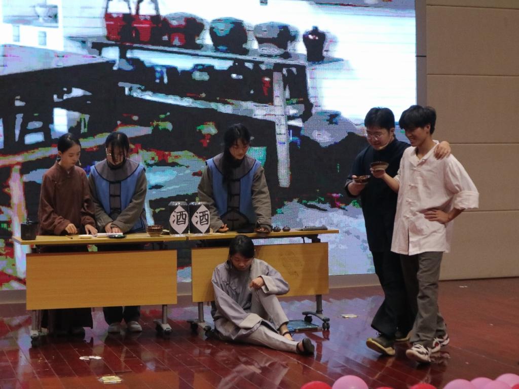 最后,主持人宣布本次大赛的最终结果,旷晓霞书记、石勇副院长、林安宁副院长等学院领导依次上台为获奖的班级颁奖并合影留念。21汉本一班与21秘书班合作的节目《孔乙己》荣获一等奖;22秘书班《秋瑾》和21戏文班《魂》荣获二等奖;22戏文班《金陵河畔》、22汉本一班《终身大事》、22汉本三班《薪火代代传,奋斗正当时》荣获三等奖。本次大赛还设置了最佳导演奖、优秀演员奖、最佳组织奖、最佳服装道具奖等,获奖班级及同学依次上台领奖。