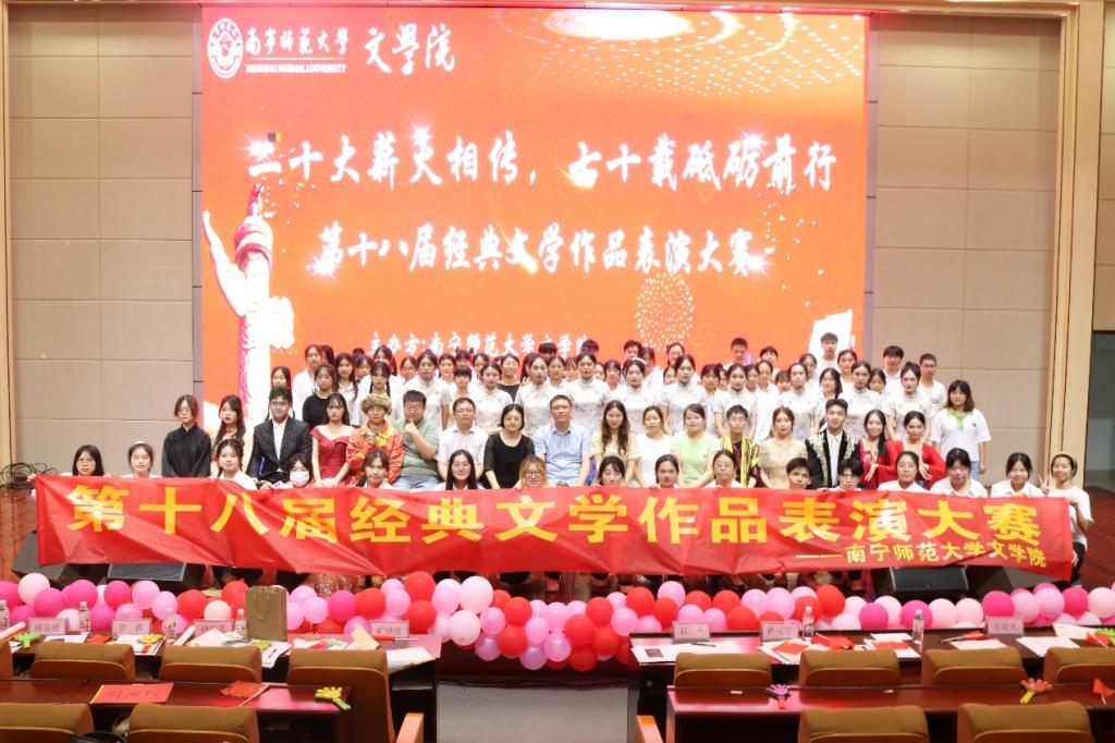 弘扬党的二十大精神,砥砺七十载不息。为了让文苑学子们进一步感受经典,传承华夏文明,弘扬中华文化,77779193永利官网于5月28日19:00在五合校区文科综合楼114报告厅举办第十八届经典文学作品表演大赛决赛。77779193永利官网党委书记旷晓霞老师,副院长石勇老师(主持行政工作),副院长林安宁老师,团委书记钟振花老师,辅导员张煊光、罗茜老师莅临本次大赛并担任评委,学生代表、社团代表以及兄弟院校代表们出席本次大赛。
