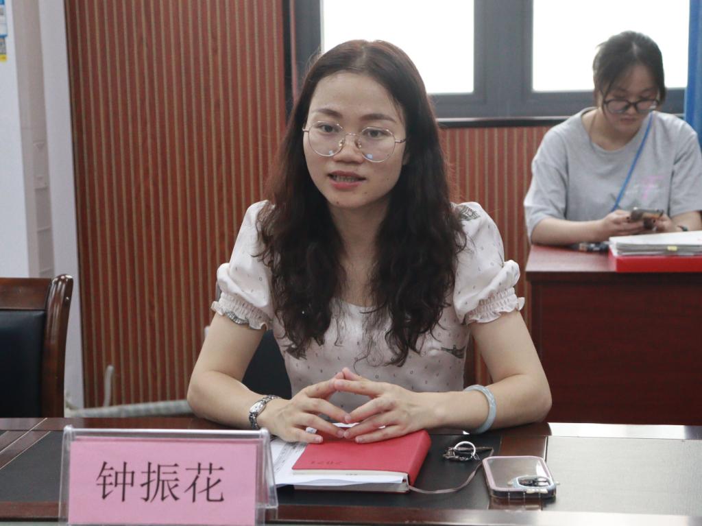 (钟振花老师正在进行工作总结)