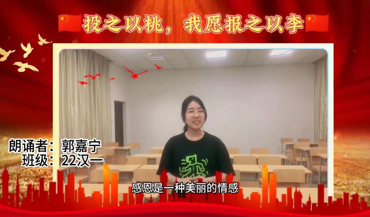 在此次活动中,同学们紧扣二十大主题,结合资助政策内容,精心准备朗诵稿并拍摄短视频,视频内容体现出感恩祖国、感恩党的的思想内涵,展示了受资助学子自强自立,勇敢自信的精神风貌。同学们富有感情的朗诵和精心制作的视频给评委们留下了深刻的印象。其中,22汉本一班的青年突击队用优美的背景音乐和铿锵有力的声音,表达了对国家资助政策的感恩和对未来的憧憬,22汉本三班的爱党爱国爱人民队用男女合作朗诵的方式表达了对党和国家深深的感谢和报效祖国的远大理想。其他小队也都展示出了他们饱满的精神风貌,深受评委们的喜爱。
