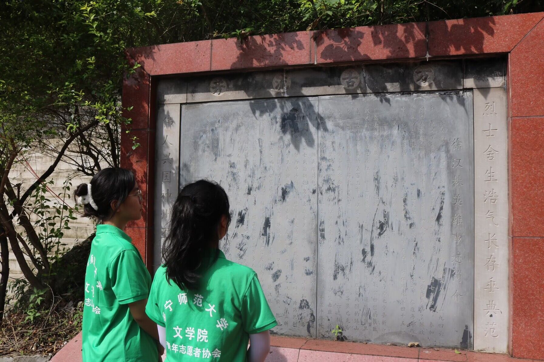 (成员们在了解徐汉林烈士的伟大革命事迹)