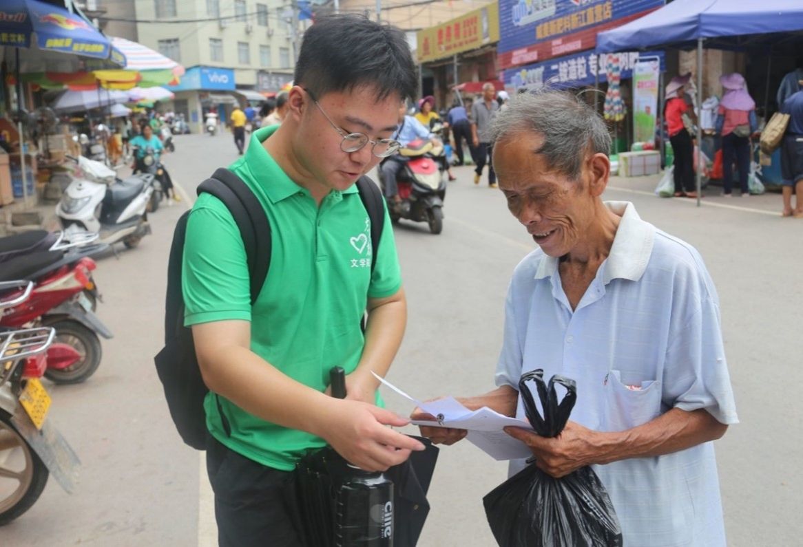 为深入学习贯彻习近平总书记关于教育的重要论述和关于语言文字工作的重要指示批示精神,加大国家通用语言文字推广力度,助力乡村振兴,77779193永利官网“破晓”推普助力乡村振兴服务团队于7月16日在新江镇那蒙坡开展了第一天的普通话推广活动,包括调研组深入那蒙坡走访了解村民普通话使用情况、支教组在新江中心小学进行普通话课程教学活动。