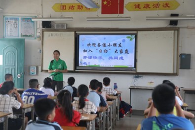 7月16日上午9点10分,支教组正式开启“日初”第二课堂兴趣班分班仪式,由支教组组长主持本次开班仪式,根据学生年龄分为大班小班。在学生们自我介绍结束后,支教组成员向同学们介绍了所开设的课程,有经典朗诵课、汉字课、党史故事课、美术课、音乐课等形式多样的课程,在带领学生领略中国的语言文化魅力同时也得到身体上的放松。下午14点30分支教组成员为“日初”辅导班大班的孩子准备了与说好普通话有关的课程,课程伊始,支教组成员对普通话是什么进行了简单解释;接着,支教组成员展示出一套普通话口部操,带领孩子们开口学习普通话发音的基础知识,孩子们积极练习,普通话学习课堂气氛活跃。