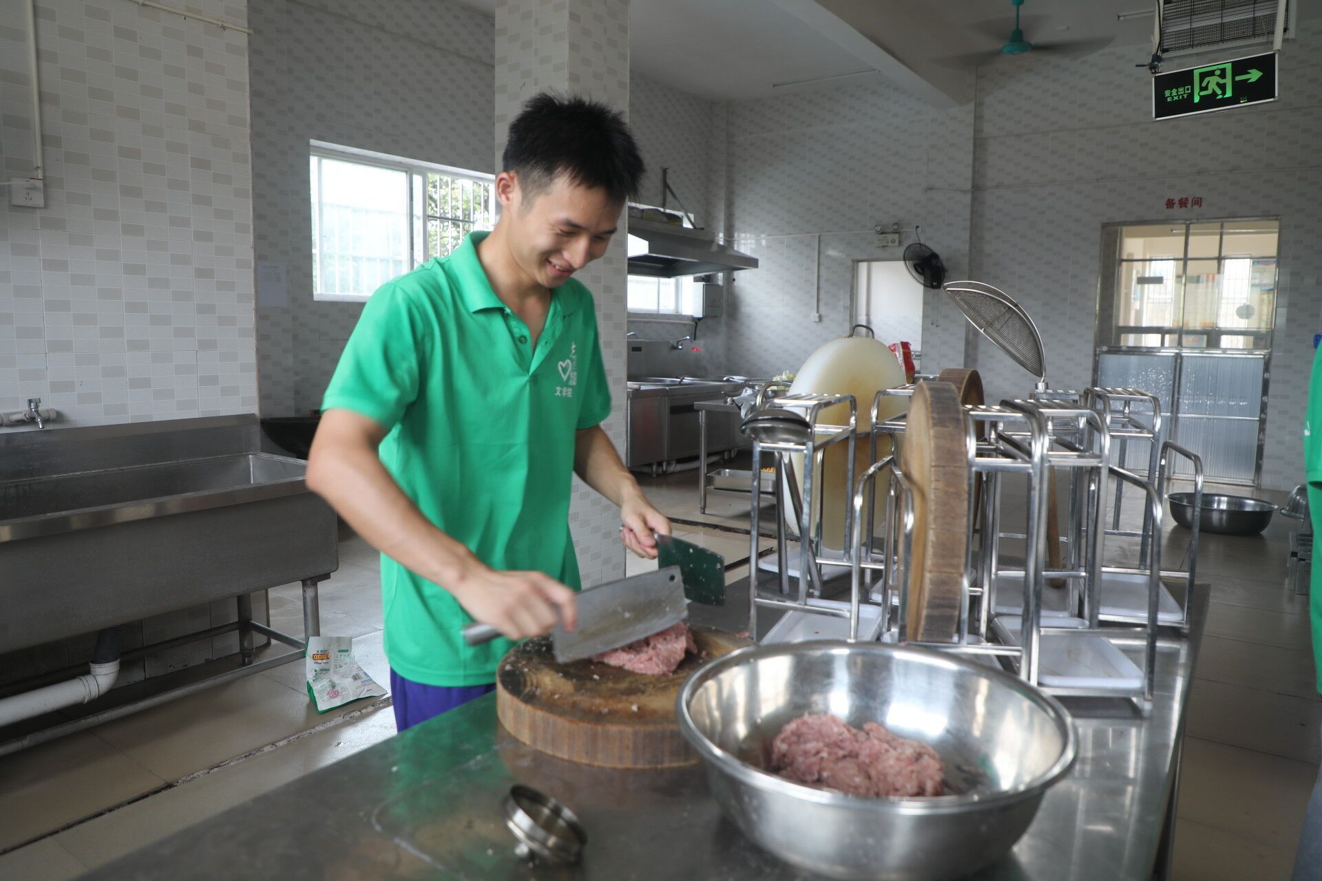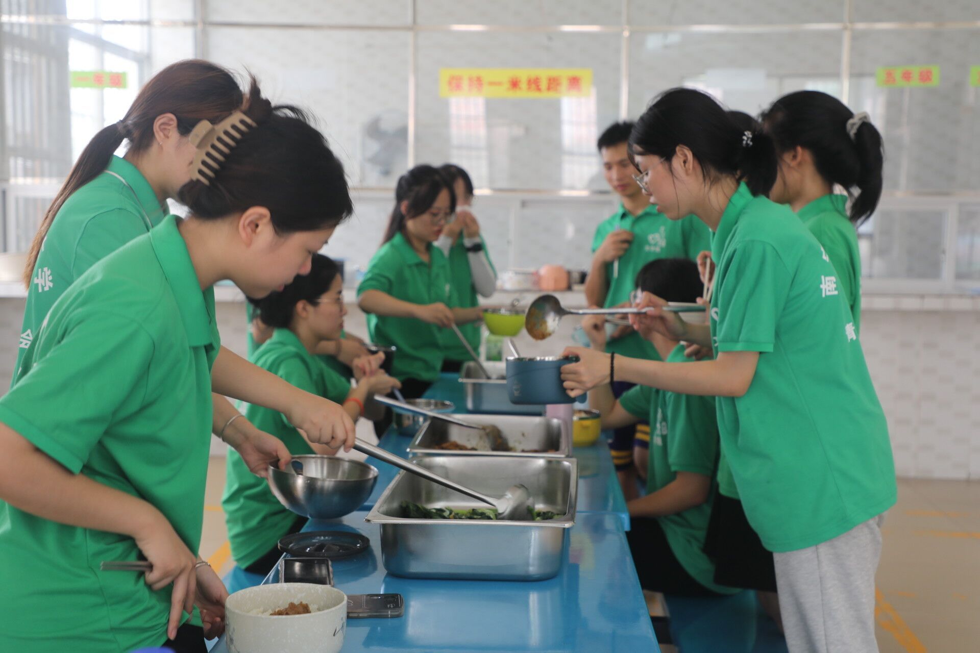 一切工作准备完成后,她们分工明确,有人剥菜洗菜,有人切菜切肉,为所有队员们精心准备午饭。尽管她们每次做饭都大汗淋漓,但她们欢声笑语依旧充满活力。