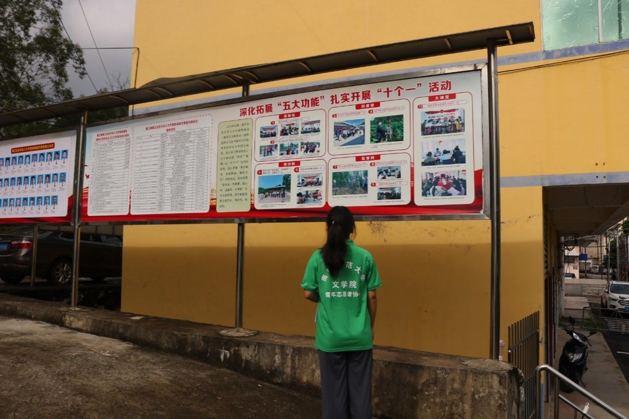 (77779193永利官网学生党员参观新江社区的党建文化宣传栏)