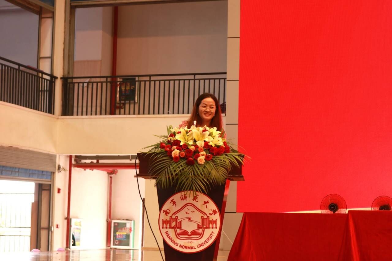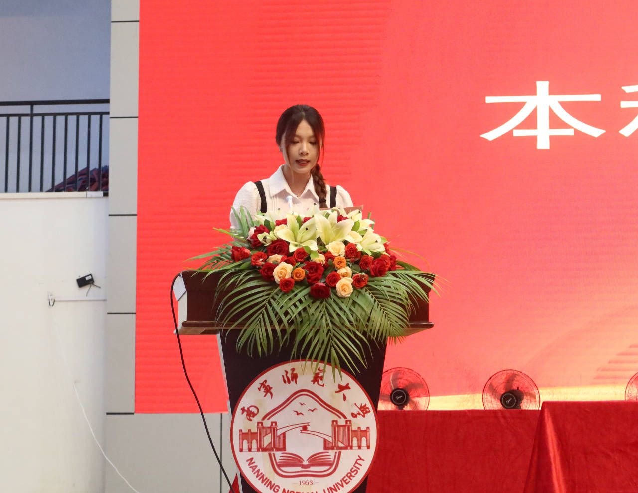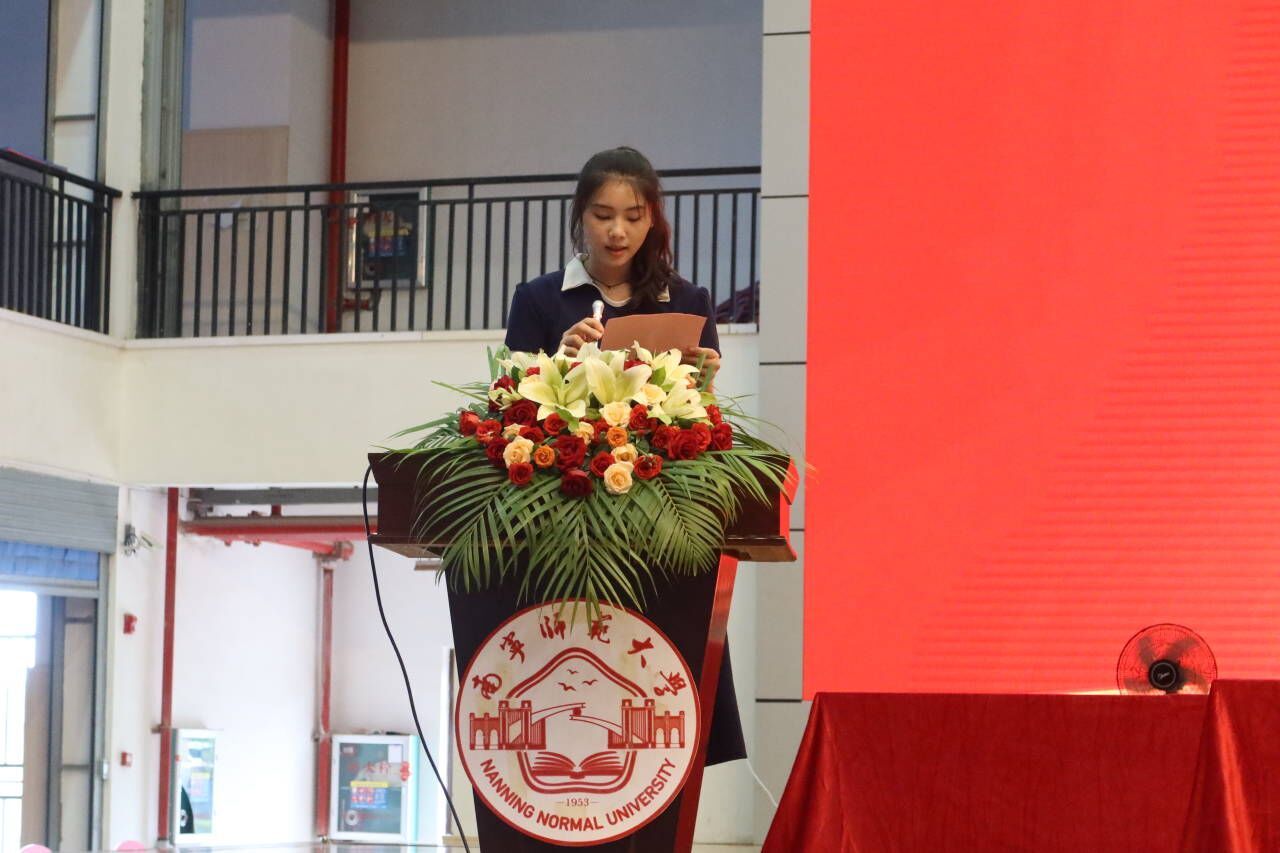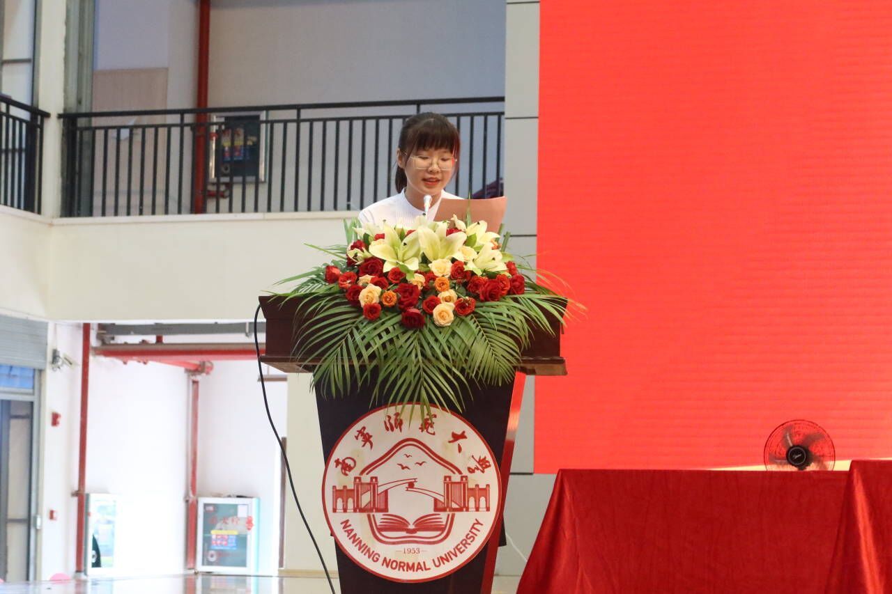 高年级学生代表22汉本二班蒙燕和研究生代表邱容分享了在学校学习生活的感悟,她们用自己的经历告诉同学们要牢记自己对未来的那份执着,确立目标、刻苦学习、注重实践、敢于创新,让自己的理想小舟,在充满风浪的大海上不失去航向。