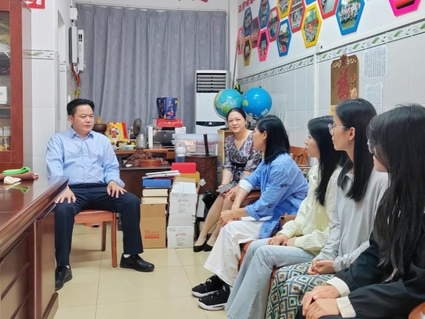 首先,杨艳教授与实习生进行座谈。座谈会上,实习生详细汇报个人实习情况。在了解完情况后,杨艳教授表示希望大家抓住实习机会,多向实习指导老师请教,丰富专业知识,提高教学水平,为今后的教育工作打下坚实基础;此外,在实习期间要开展好问卷调查工作,合理安排工作时间与论文撰写时间。
