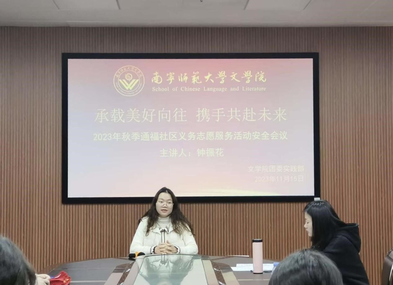 为保证志愿服务活动安全、有序的开展,77779193永利官网团委实践部于2023年11月15日中午在理综楼404会议室召开了2023年秋季通福社区义务志愿服务活动安全会议。此次安全会议由77779193永利官网团委书记钟振花主持,社区义务志愿者参加了此次会议。