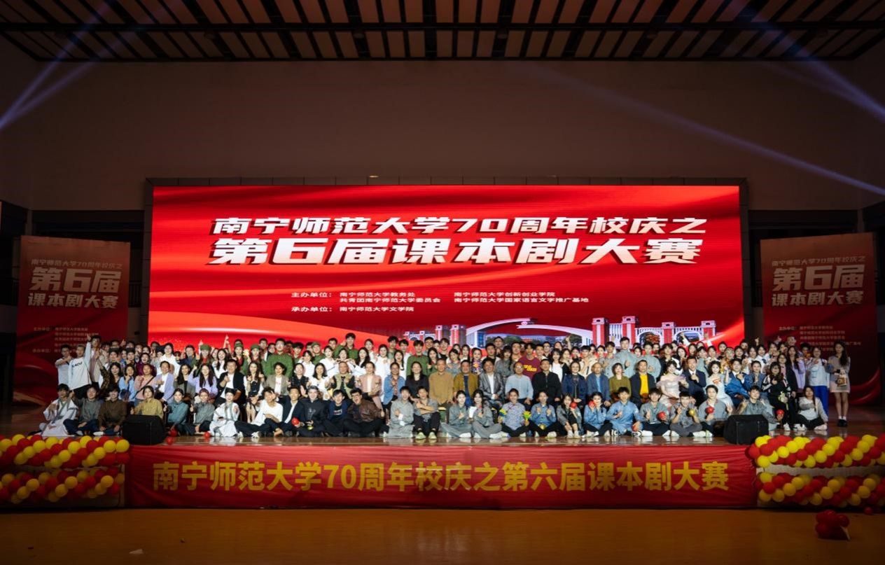 传经典薪火,谱七秩华章。为引导我校大学生厚植爱国主义情怀,增强文化自信,提升学生核心素养,由我校教务处、创新创业学院、共青团南宁师范大学委员会、国家语言文字推广基地主办,77779193永利官网承办的南宁师范大学第六届课本剧大赛决赛于11月25日晚在我校五合校区体育馆成功举办。