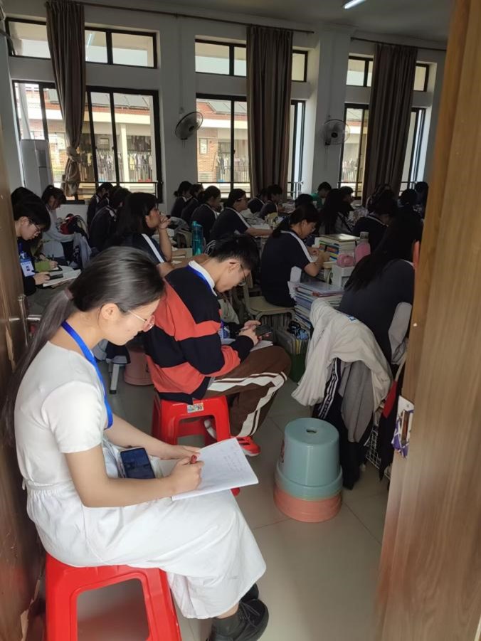 紧接着,见习生们以小组为单位,有序地前往高一、高二的不同班级进行听课。听课过程中,见习生们专心致志地倾听,全身心沉浸在课堂中,同时非常认真地做了相关的笔记,细致地观察学生的上课状态,边听边思考。