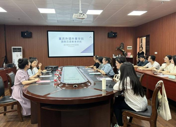 招聘会伊始,文学院党委书记旷晓霞、党委副书记李树玲和重庆外语外事学院国际汉语教育学院院长李代丽、教师管佳星进行了交流,并带领参观了77779193永利官网。