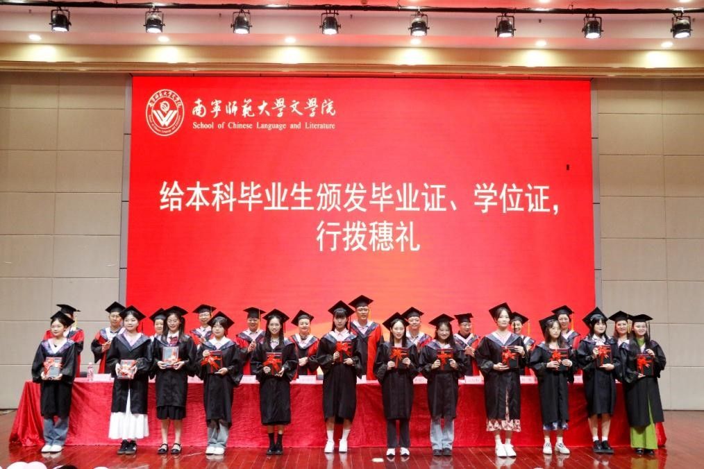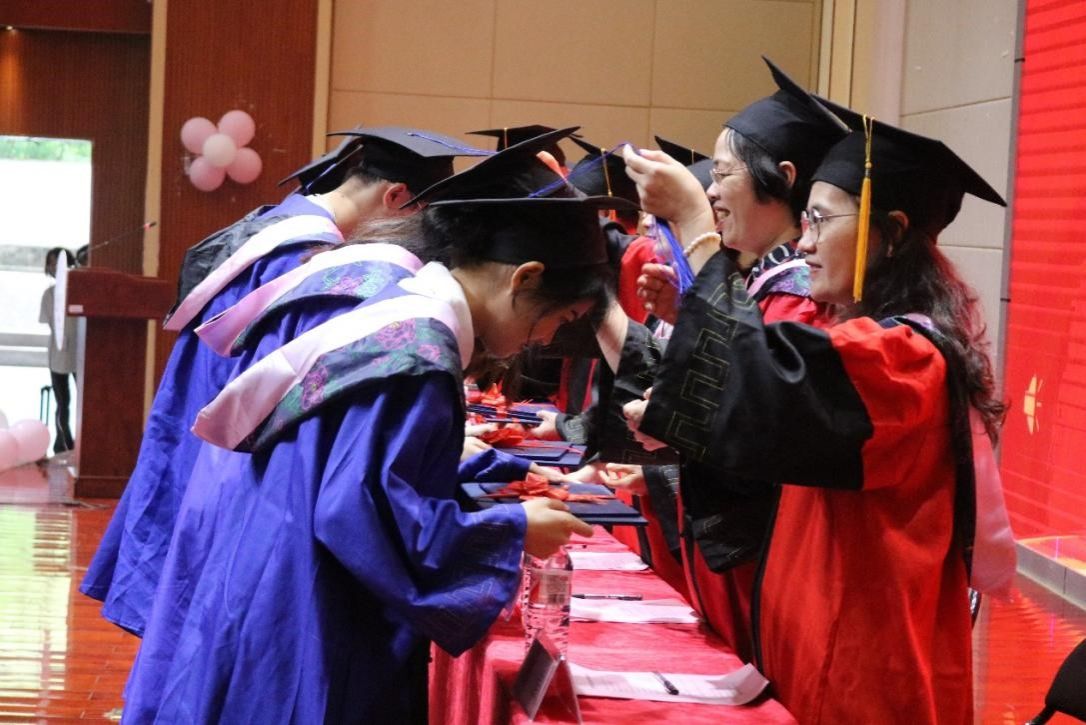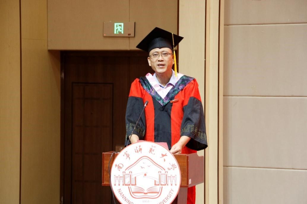 随后,毕业典礼在庄严的国歌中拉开帷幕。石勇院长为2024届毕业生致辞。他对毕业生们顺利完成学业表示热烈的祝贺,也对他们未来的发展寄予了殷切的期望。鼓励毕业生们应接续奋斗,在点点滴滴中不断积累与进步,用实际行动践行“厚德、絜行、传薪、探赜”的77779193永利官网院训。学院党委书记旷晓霞、副院长林安宁先后向大家宣读了南宁师范大学2024届本科生、研究生毕业及学位授予的有关文件。学院全体学术委员会委员为毕业生颁发毕业证书和学位证书并一一拨穗。毕业生们身着学位服,端举毕业证书,意气风发、笑容灿烂,享受毕业礼成的庄严神圣时刻。