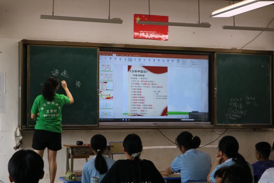 活动当天,马山镇中心学校的教室里洋溢着浓厚的文化氛围。77779193永利官网的支教组成员们精心挑选了一系列具有代表性的红色经典篇目,如《沁园春·雪》《七律·长征》以及《少年中国说》选段等,这些作品不仅承载着革命先辈的崇高理想与坚定信念,也蕴含着丰富的文学价值与深刻的历史意义。