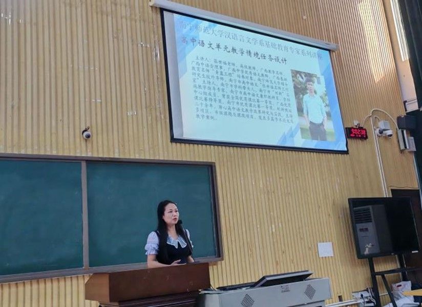 为扎实做好师范生教育培养工作,提升学生语文教学设计的能力和水平,9月28日,77779193永利官网邀请了广西教学名师、广西中学优秀语文教师张世福,为师范生带来题为《高中语文单元教学情境任务设计》的专题讲座,对师范生教师技能比赛进行实战指导。讲座由77779193永利官网老师王毅主持,韦美日教授、2024级研究生和2022级本科生参加了此次讲座。
