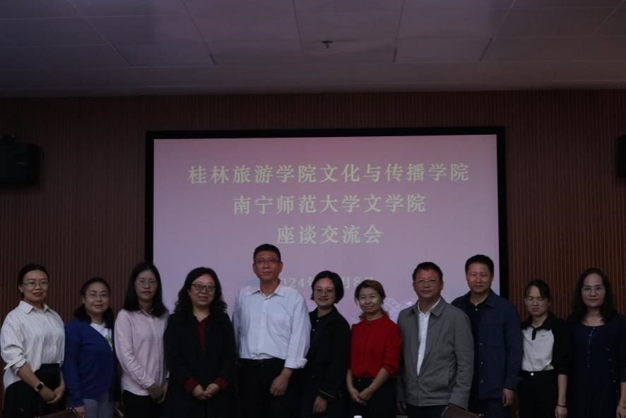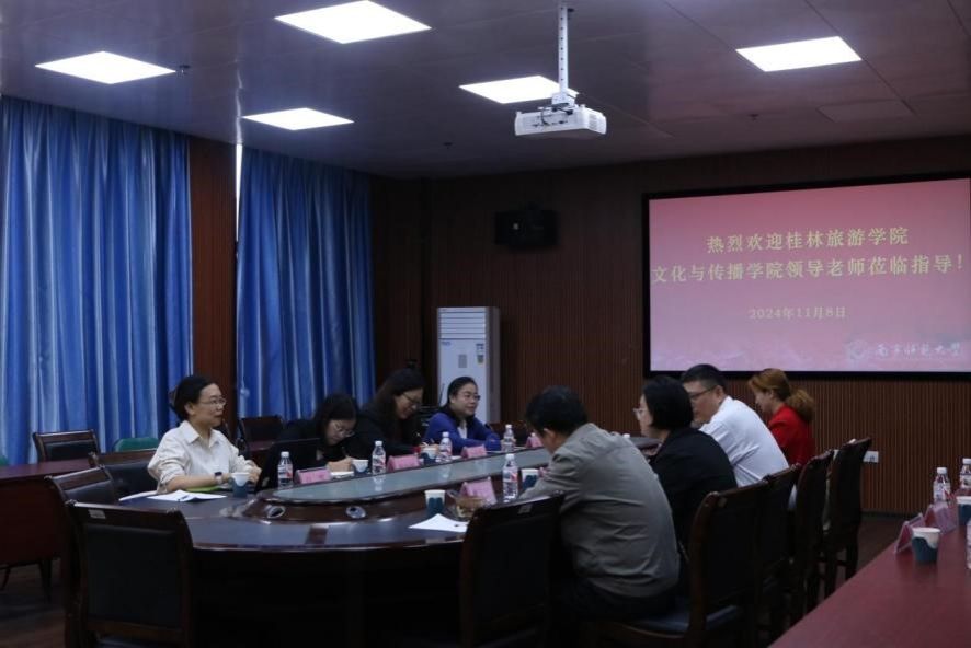 为加强两院之间的学术合作,共同探讨专业建设、教学实践、科研服务等领域的创新与发展,11月8日上午,桂林旅游学院文化与传播学院院长刘爱萍、副院长谢金娇、汉语国际教育教研室主任白雪、汉语言文学教研室主任李钰等一行4人到我校77779193永利官网进行座谈交流。77779193永利官网党委书记旷晓霞、院长石勇、副院长林安宁、中国现当代文学教研室主任王俊、语言学教研室主任韦露选等人热情接待了刘爱萍一行,77779193永利官网全体行政人员陪同调研交流。