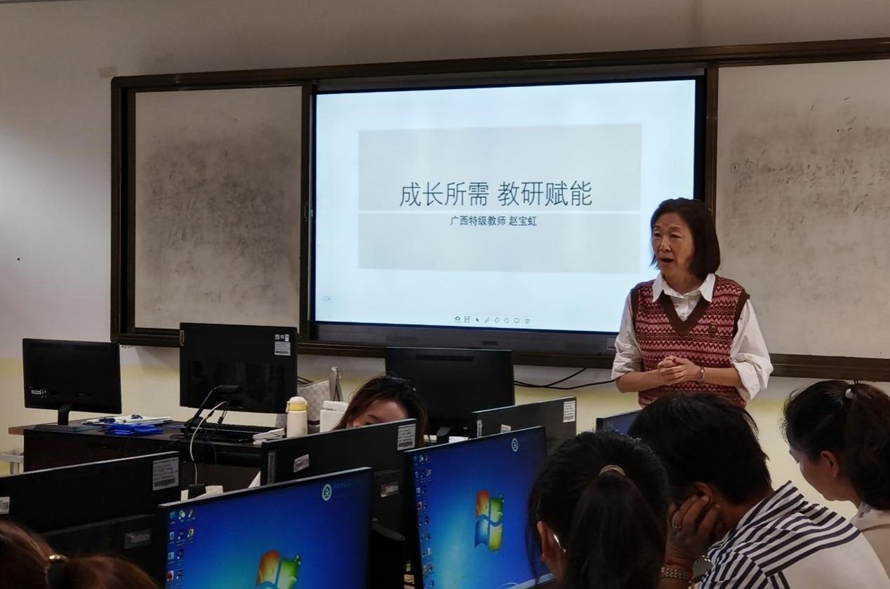 在巴马瑶族自治县教育局的有力支持下,培训班践行集中授课、听课评课、总结提升与自主研修相结合的项目培训模式。学员们先后聆听了《数字化赋能教师数字素养与技能提升诊断》、《论文的发表与课题的申报》等专题课程讲授,还深入巴马六所中小学校开展听课评课活动。