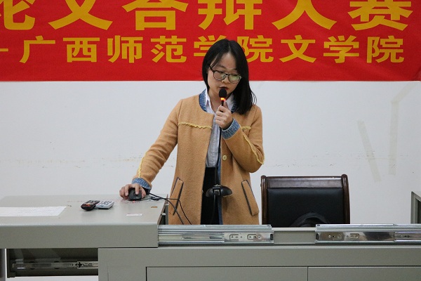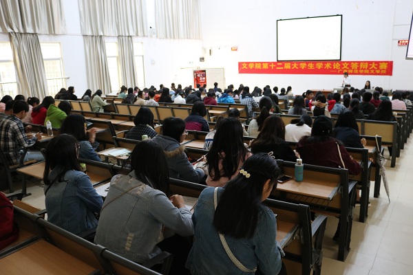本次大学生学术论文答辩大赛分为初赛与决赛,经77779193永利官网各学科老师的严格评选,共有6组选手入围决赛。大赛在回顾上一届大赛的精彩剪影和本次参赛选手以及组织部成员的风采中拉开了序幕,各组选手依次上台,借助PPT向评委及同学们阐述作品的写作思路,相关学科老师根据选手的论文、陈述提出相关的问题。1号选手卢雯雯在论文《周作人的散文观念》中,着重分析周作人小品文人道主义、美文、闲适自然、追求涩味的特点,在答辩过程中亦镇定自若地阐明自己的观点;3号选手王娇台风沉着自信,答辩过程中语言条理清晰,把论文《论述古诗十九首的生命意识》的写作思路及论文结构清晰地呈现给观众;6号选手韦慧以扎实的专业知识,清晰的思路,将论文《汉字字理识字研究》完整地呈现出来,其以自身对汉字字理的独特理解获得了评委的一致好评。此外,还有风格独具的5号选手韩如雪,以戏剧影视文学的角度,分析中国内地电视综艺节目热潮等。