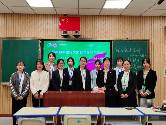 3月17日,二十六中学开展常规管理回头看活动,实习小组成员们配合学校工作参与到课间操的组织当中,并参加语文组以“史传文教学”为主题的深度教研活动,学习到了关于史传文教学策略的专业教学知识,受益匪浅。活动结束后,实习小组全体成员与语文组参会教师共同合影。