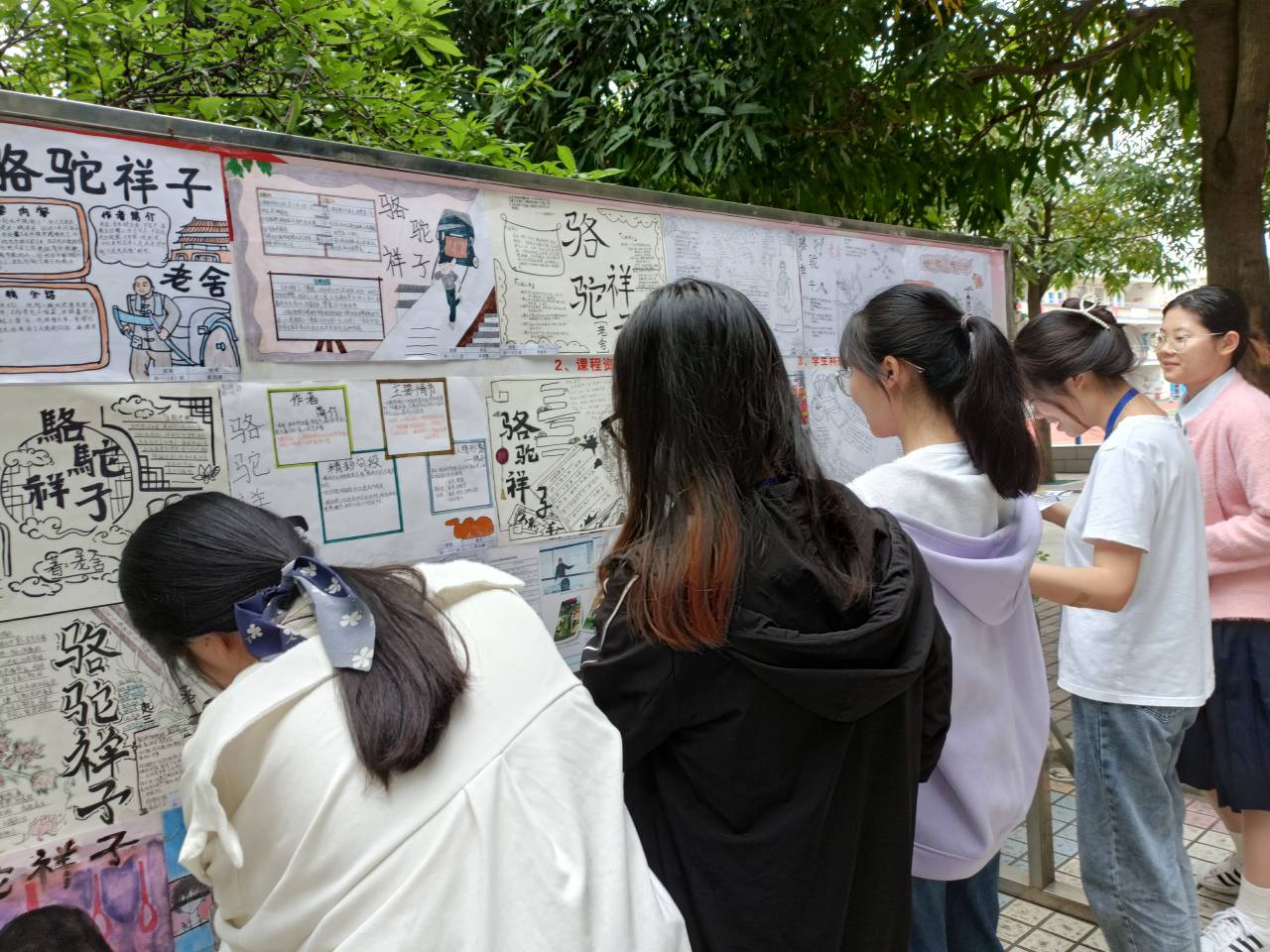 (实习老师们粘贴学生《骆驼祥子》主题手抄报)