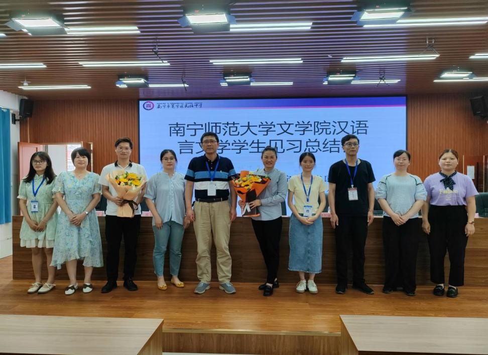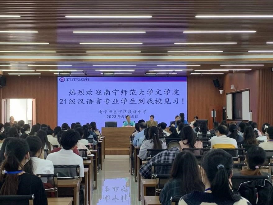 会上,主持人黄老师介绍了参会领导和教师。带队老师苏葆荣副教授介绍了见习内容;学校教导主任莫燕老师为大家讲解了见习的时间与地点和注意事项;梁玲副校长介绍了民族中学的教育理念和招聘语文教师的情况,勉励大家在见习中虚心求教、勤学本领、学有所成。会议最后,黄老师预祝大家能够拥有一段圆满的见习旅程。会议结束后,见习生们与实践导师和班主任互留了联系方式,互相交流了各自的情况。