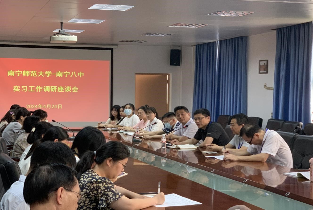 为巩固教育实习成果,提升教育实习质量,“南宁师范大学—南宁市第八中学实习工作调研座谈会”于2024年4月24日下午在南宁市第八中学博闻楼四楼大会议室开展。