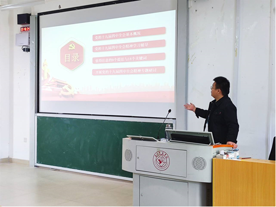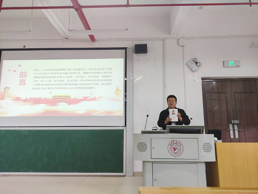 (党务办张煊光主任向同学们介绍《习近平谈治国理政》第三卷主要思想)