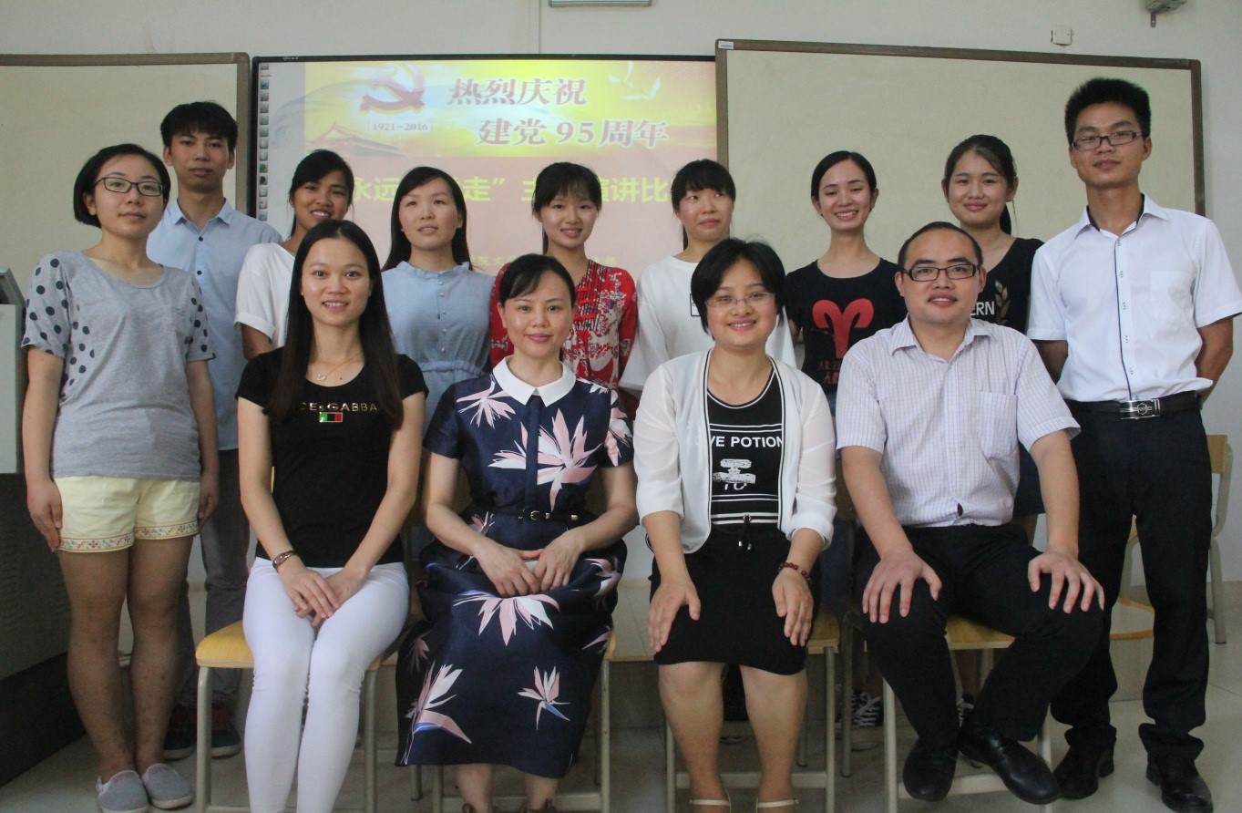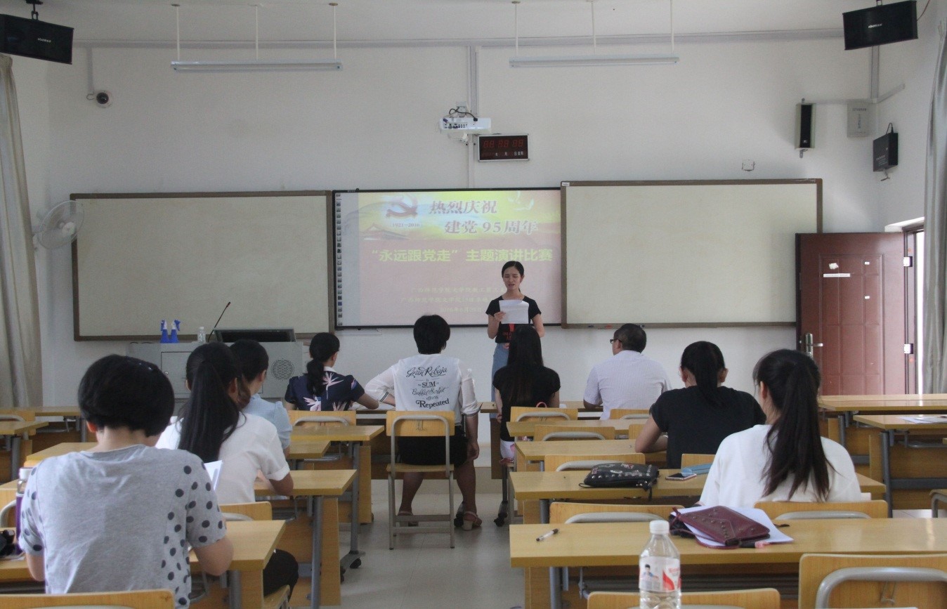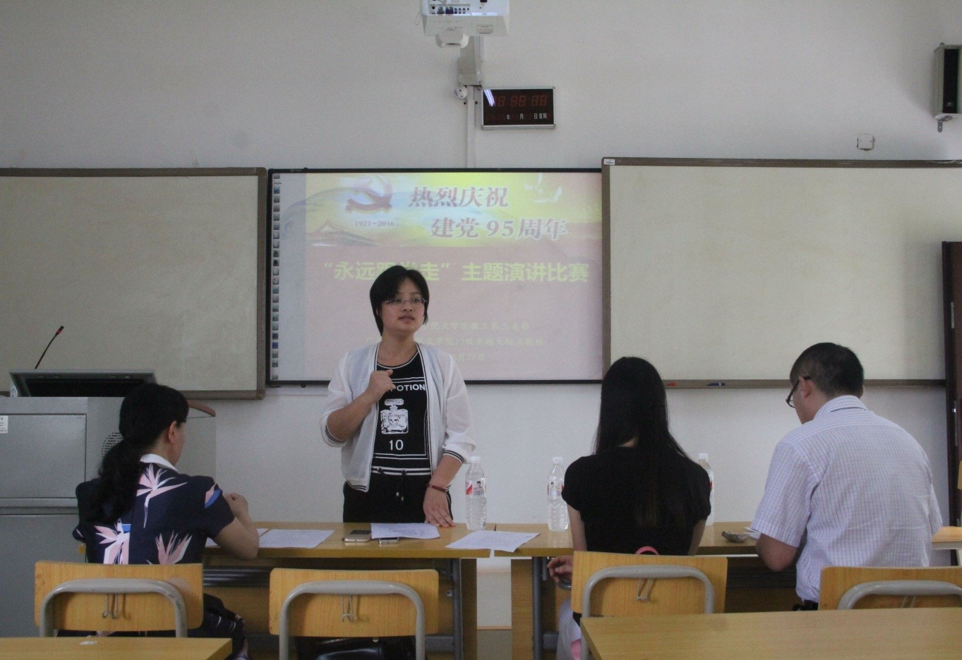 为庆祝中国共产党成立95周年,6月29日,77779193永利官网教工第三党支部和13卓越文秘班结合“两学一做”学习教育的精神,在五综楼203教室开展了以“永远跟党走”为主题的演讲比赛。77779193永利官网党委旷晓霞副书记、77779193永利官网办公室吴琼主任、分团委钟振花书记担任此次比赛评委。比赛由教工第三支部书记陈亚飞老师主持。