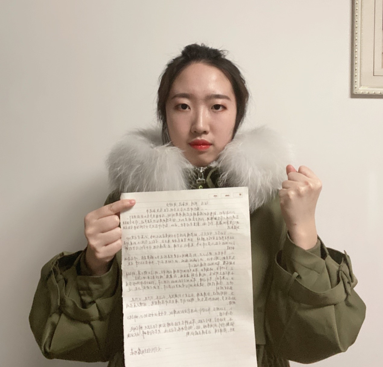 (本科生第四党支部党员李欣桐誊写承诺书)