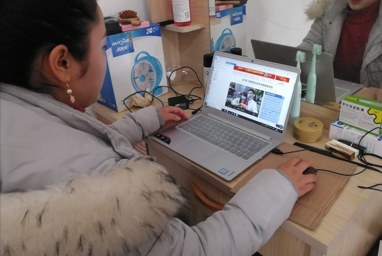 (本科生第一党支部党员刘硕苗浏览疫情发展新闻)