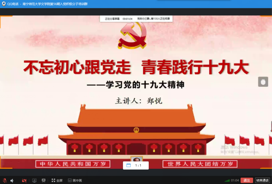 本次培训采取腾讯QQ平台线上集中学习和分散学习相结合,充分发挥基层组织和学员的主动性和积极性。本期培训共分专题学习、分组讨论、撰写培训心得三部分,所有项目皆按培训方案内容安排和具体要求统一进行。